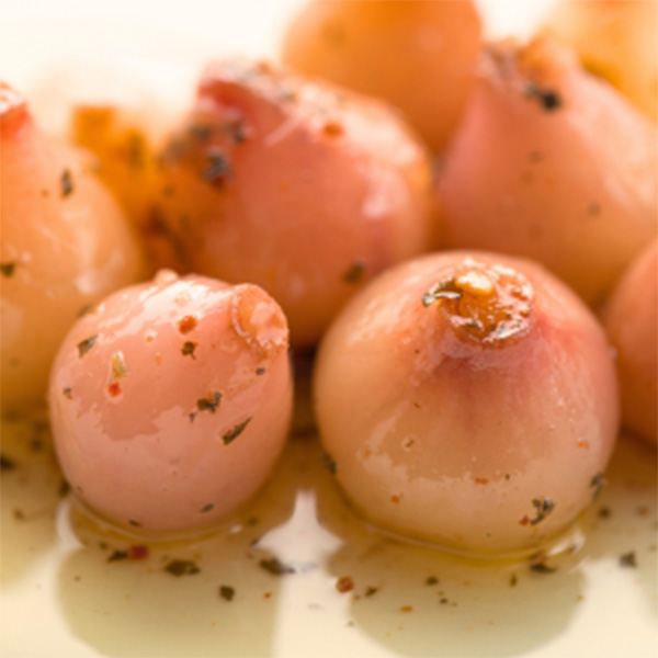 Des bulbes de fleurs sauvages cuits, offrant une saveur unique et légèrement amère, souvent servis avec de l’huile d’olive et du sel.
