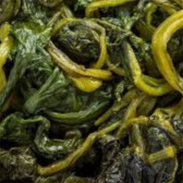 Les cime di rapa, que l’on pourrait traduire par “feuilles de navet”, sont un autre accompagnement typique des Pouilles. Souvent préparées avec des pâtes ou servies seules, elles apportent une amertume délicate.