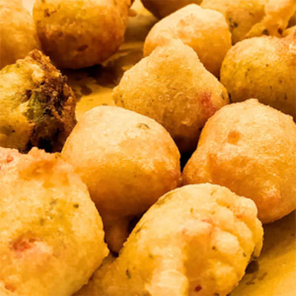 De petites boules de pâte frites, simples ou garnies de légumes, de poisson ou de fruits de mer.