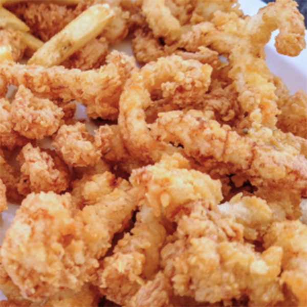 Des fritures de calamar, de morue, etc.